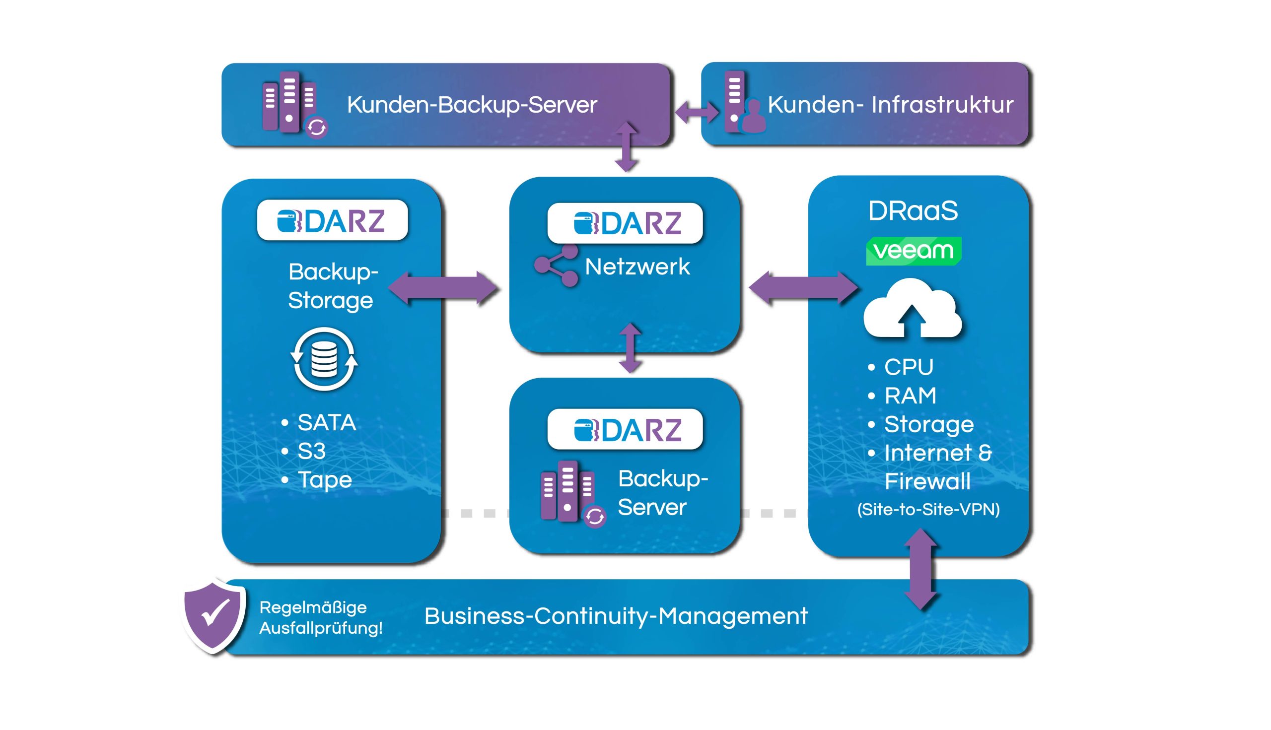 Wir kombinieren modernste Backup-Technologie mit hochsicheren Rechenzentren und einem vollständig orchestrierten BCM- und DRaaS-Konzept.