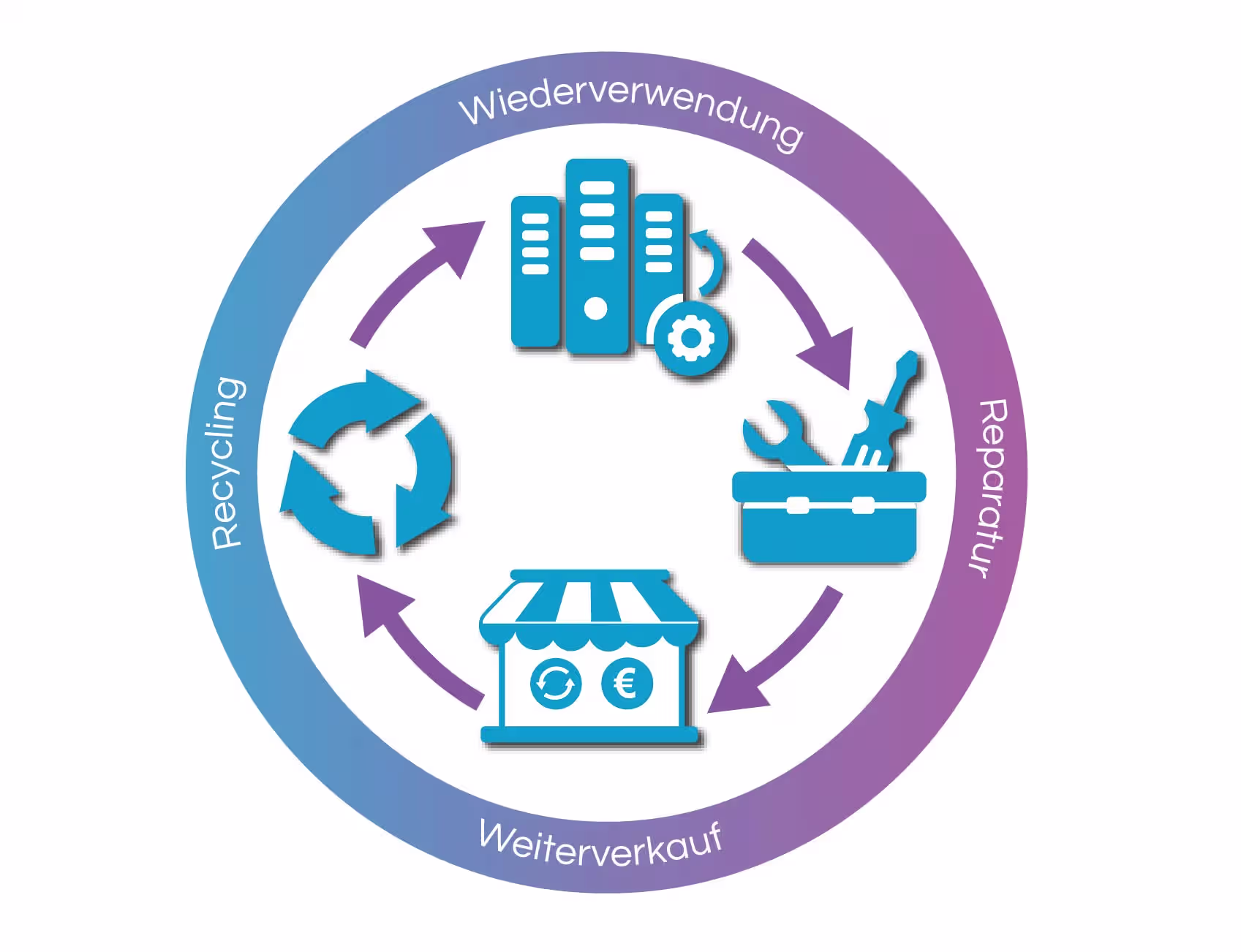 Mit unserem Circular-IT-Modell verlängern wir den Lebenszyklus Ihrer Hardware durch Reuse, Repair, Remarket und Recycle – ressourcenschonend, kosteneffizient und 100 % datensicher. Ein zentraler Bestandteil dabei ist unser IT-Asset-Recovery-Ansatz, mit dem wir den wirtschaftlichen Restwert Ihrer Altgeräte systematisch erfassen und maximieren.