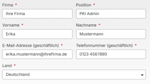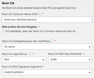 Die hier erfassten Daten bilden die Grundlage für Erstellung und Verwaltung aller Zertifikate Ihrer PKI.
