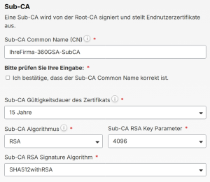 Legen Sie die Informationen für Ihre Sub-CA fest.